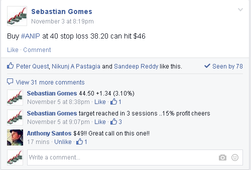 We told our members in facebook private group to buy ConforMIS Inc (NASDAQ: CFMS) yesterday (march 13th) at $1.36. Now look at the price of the stock – its up 65% at $2.25 from our buy price. This is how easy money they made. If you had invested $5,000 in CFMS, it could had been moved up to $8,250. It’s not yet late, join us at info@tradersinsights.com