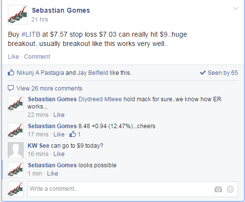 We told our members in facebook private group to buy ConforMIS Inc (NASDAQ: CFMS) yesterday (march 13th) at $1.36. Now look at the price of the stock – its up 65% at $2.25 from our buy price. This is how easy money they made. If you had invested $5,000 in CFMS, it could had been moved up to $8,250. It’s not yet late, join us at info@tradersinsights.com