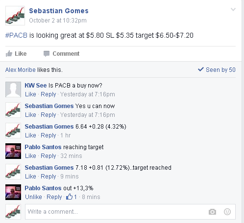 We told our members in facebook private group to buy Pacific Biosciences of California (NASDAQ:PACB) on October 1st at $5.80. Now look at the price of the stock – its up 33% at $7.75 from our buy price. This is how easy money they made. It’s not yet late, join us at info@tradersinsights.com