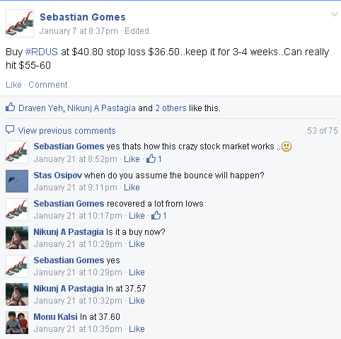 We told our members in facebook private group to buy Radius Health Inc (NASDAQ:RDUS) on January 07th at $40.80. Now look at the price of the stock, it’s 20% from our buy call in given time and now at $48. This is how easy money they made. It’s not yet late, join us at specialpennystockalert.com@gmail.com